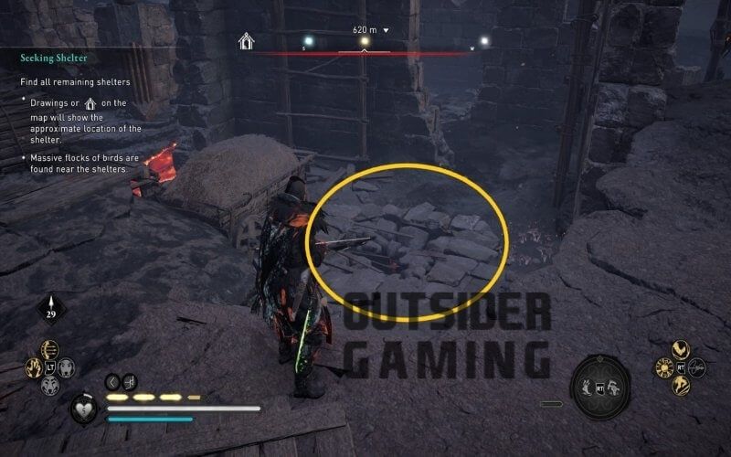 このプラチナインゴットは、発掘現場の北部にあるいくつかの破壊可能な壁の後ろにあり、オーディンの視力の助けを借りて見つけることができます。 掘削現場の北の尾根から床に最初の破壊可能な壁を見ることができます。
