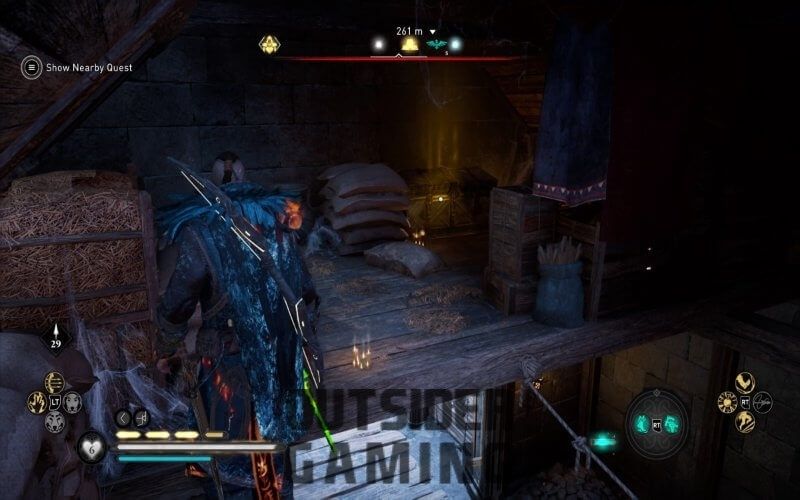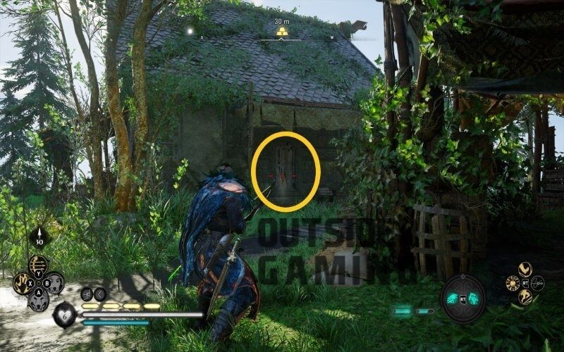 村の北側にはインゴットチェストが入った家があります。 オーディンの視力を使って正確な家を見つけましょう。 木に面した家の側面には、窓をふさいでいる壊れやすい木製の障壁があります。