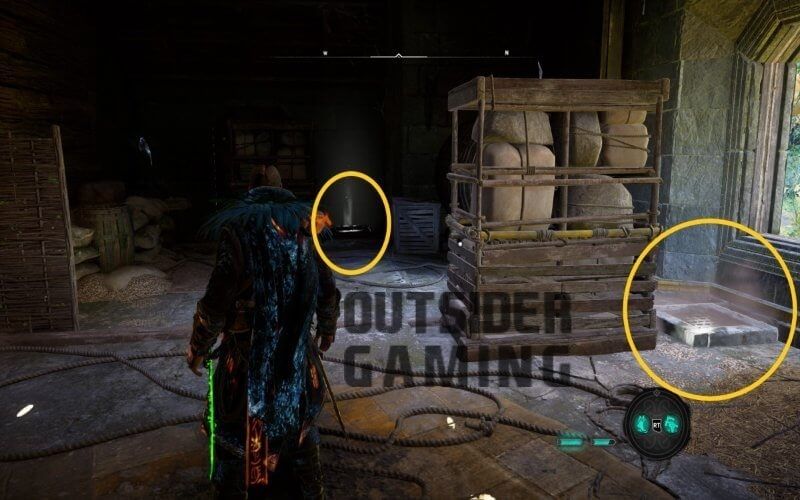 家の中では、2匹のネズミがあなたを攻撃します。 トラップできる排水口の1つは、通過したばかりの窓の下にあり、もう1つは、ドアの右側の木製の箱の下にあります。