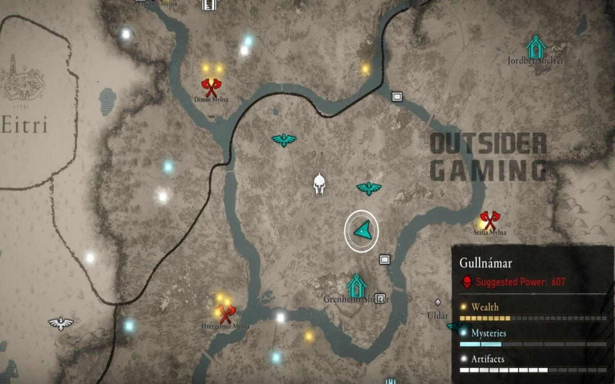 グレンヘリルシェルターは、中央のグルナマール視点の南にあり、4つの巨大なドワーフ像の1つの上にあります。 上の画像の場所に移動すると、最初のゴールドマーカーを見つけることができます。