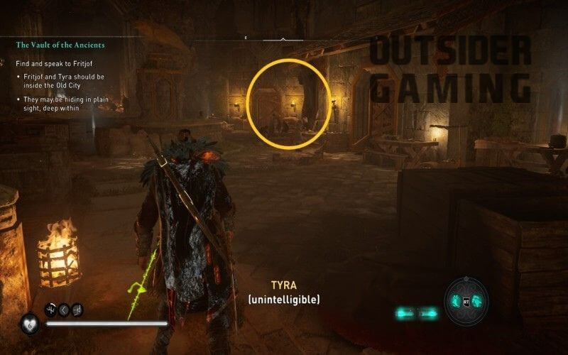 まず、旧市街の奥深くでFritjofとTyraを見つける必要があります。 洞窟に入って橋を渡るときは、左に向かう必要があります。 このエリアは厳重に守られているので、井戸を通り過ぎて光ビームパズルに向かって戦う必要があります。