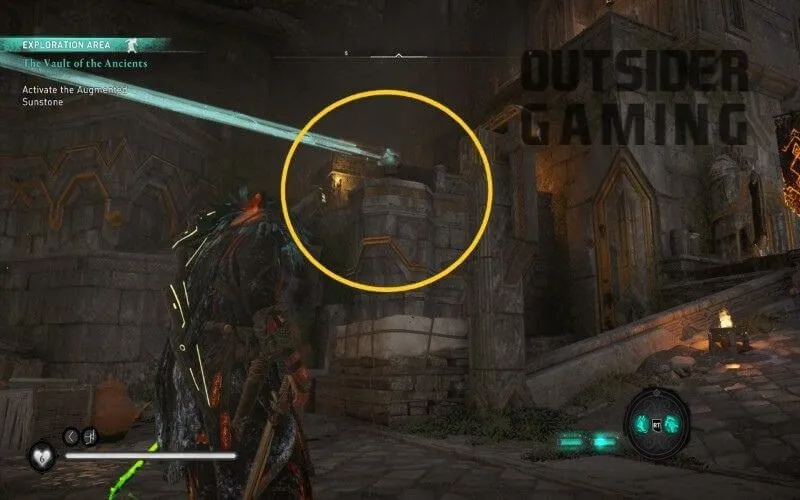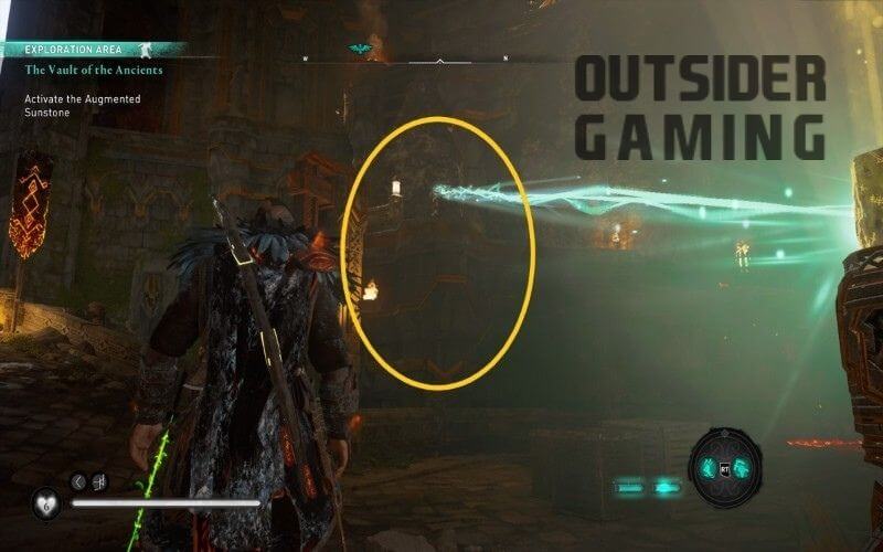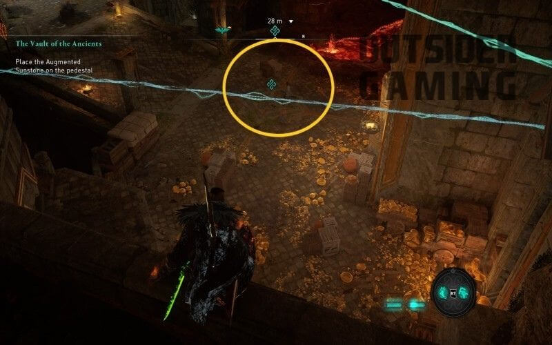 次のステップでは、元の場所、金庫のドアに戻ります。 サンストーンをドアの前の台座に置く必要があります。 下の画像のように、客観的なマーカーでマークされます。