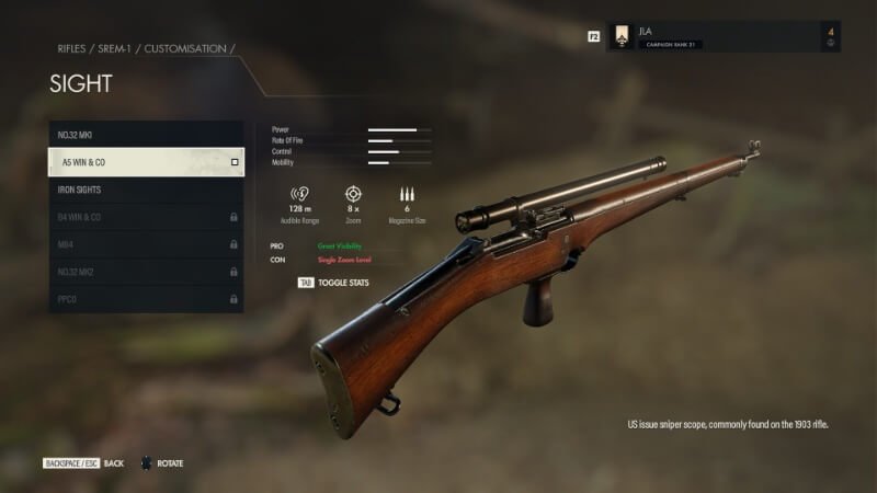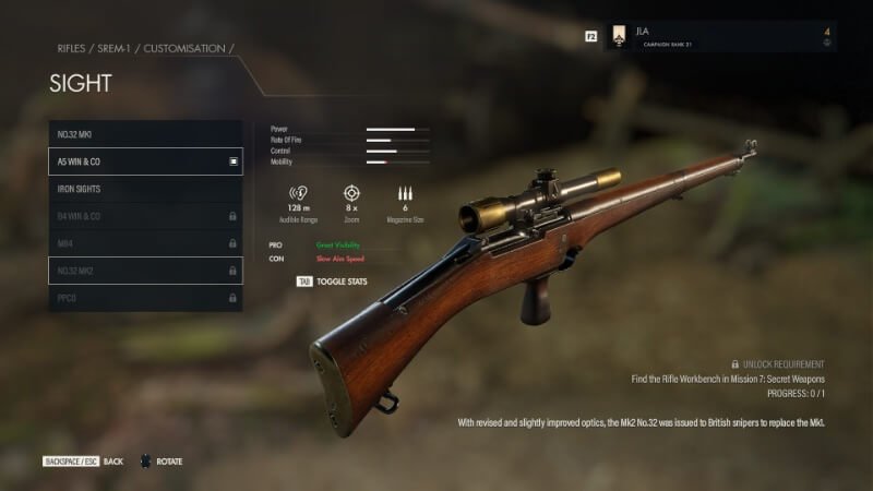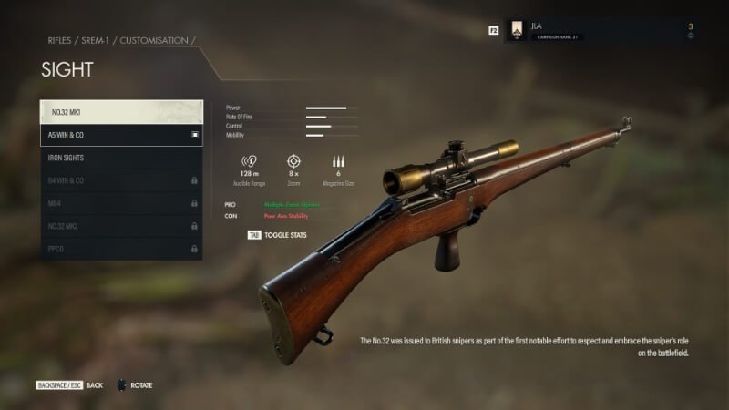 No 32 MK1には、通常の8倍ズーム機能があります。 これはゲームの基本的なスコープの1つであり、最初からそれを使用する必要があることを意味します。