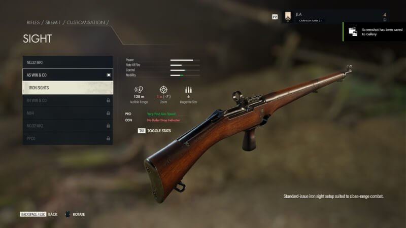 Iron Sightsは、戦闘中に狙いを定めるので、発砲率の高い狙撃ライフルに使用するのに適しています。 また、ナチスの兵士の大群に直面しているときにも便利です。 そこにあるトロフィーコレクターのために、鉄の照準器を使用してポップされた2つのトロフィー(1つはライフル専用)もあります。