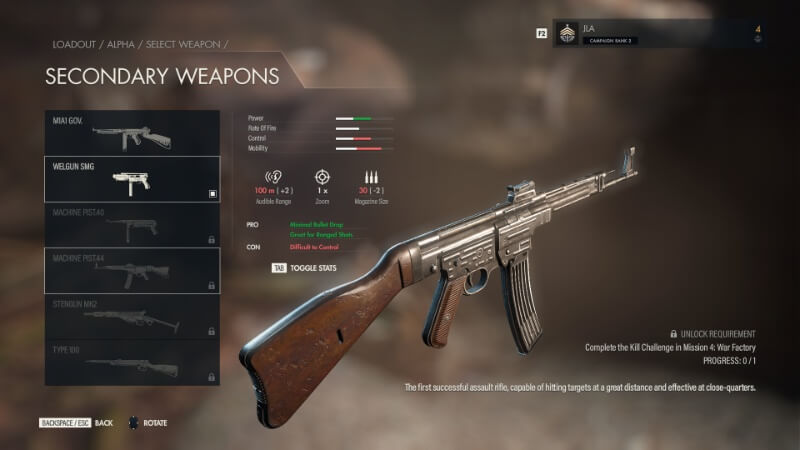 スナイパーエリート5のライフルは、二次武器として分類され、SMGと同じクラスに分類されます。