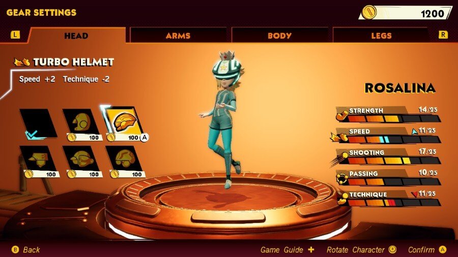ギアを装備することで、 マリオストライカーズバトルリーグでプレイ可能な各キャラクターの属性を調整する。 装備できるギアの種類は次のとおりです。 頭、腕、体、足。 各アイテムは通常、トレードオフとして別の属性を下げながら、1つの属性を上げます。