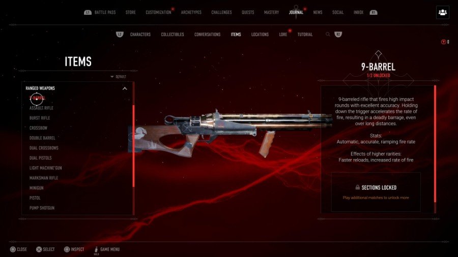 9バレルは興味深い銃です。 それはそれが使用することを考えると必要であるより良い反動のために後ろに安定化グリップを持っています 高口径弾 完全に自動化されています。 9バレルを際立たせるのは トリガーを押している間、発射速度が増加します また、長距離でも優れた精度を維持します。 レア度が高いほど、リロードと発射速度が上がります。 全体として、9バレルは、初心者や敵に近づきすぎたくない人にとっては素晴らしい武器です。