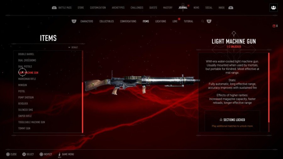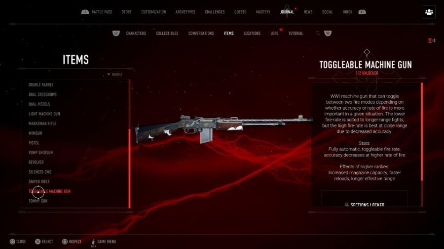 このLMGは、第一次世界大戦時代の「水冷式」銃です。完全に自動化されており、トリガーを押しながら発砲率が上がる9バレルとは異なり、LMGは 持続射撃で精度が向上。 幸いなことに、それはかなりの量の弾薬を保持しています–そして、あなたがバンドリエの特典を持っているなら、あなたは追加の弾薬から始めます! LMGは中距離(とにかく、おそらくほとんどの場合になりたい場所です)で最適ですが、絶え間ない発砲による精度により、接近戦で役立つ可能性があります。 レア度が高くなると、LMGはマガジンが大きくなり、リロードが速くなり、射程が長くなります。