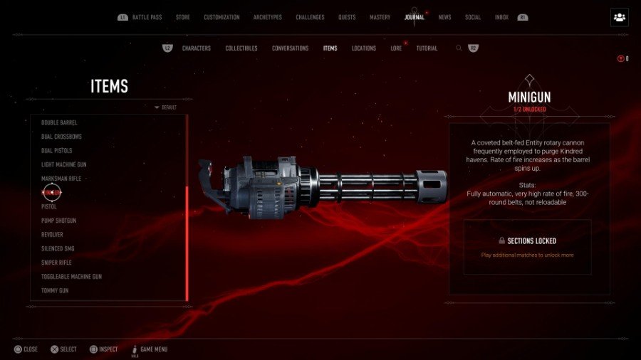 ミニガンはシューティングゲームの定番であり、大口径の弾薬が敵に大混乱をもたらします。 ミニガンを使用するほとんどのゲームと同様に、トリガーを押したままにすると、銃が起動するまでに1〜2秒かかります。銃身は、発砲を見越して回転します。 もちろん、それは完全に自動化されており、おそらくゲーム内で最も高い発射速度を備えています。 ジャーナルによると、ミニガンにはアップグレードがないようです。ミニガンには大きな欠点が1つあります。それは、300ラウンドを終えると、 ミニガンをリロードできず、武器を破棄する必要があります。 それでも、それらの300発を有効に活用できれば、別の銃は必要ないかもしれません。