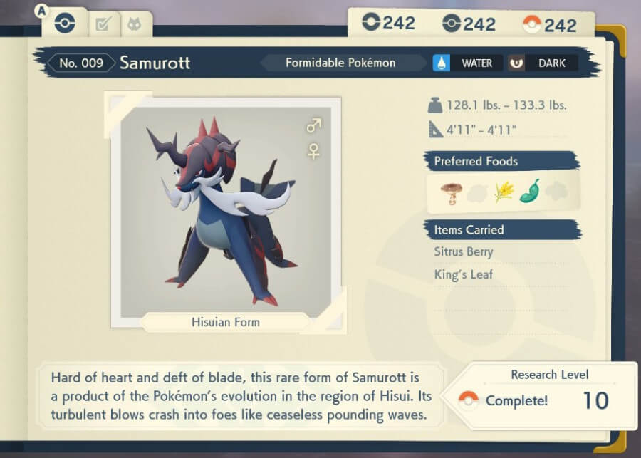 ダイケンキの基本統計は比較的バランスが取れており、山の頂上で攻撃が108、特殊攻撃が100です。 また、HPで90、スピードで85、ディフェンスで80、そして最終的にスペシャルディフェンスで65になります。 幸いなことに、サムロットのタイピングは、サイキックタイプの動きに耐性があり、ファイアタイプ、ウォータータイプ、アイスタイプ、ゴーストタイプ、ダークタイプ、スチールタイプの動きに耐性があるため、その多くを補います。 ダイケンキはグラスタイプ、エレクトリックタイプ、ファイティングタイプ、バグタイプ、フェアリータイプの動きにも弱いので注意してください。