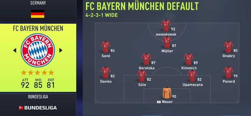 最高の選手: ロベルト・レヴァンドフスキ(OVR 92)、マヌエル・ノイアー(OVR 90)、ヨシュア・キミッヒ(OVR 89)