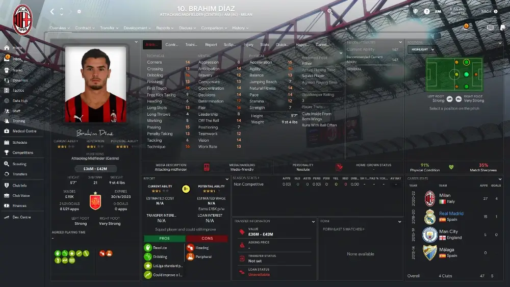 ブラヒム・ディアスは、これまでの才能に追加するもう1人の攻撃的ミッドフィールダーであり、168 PAを達成するために順調に進んでいます。
