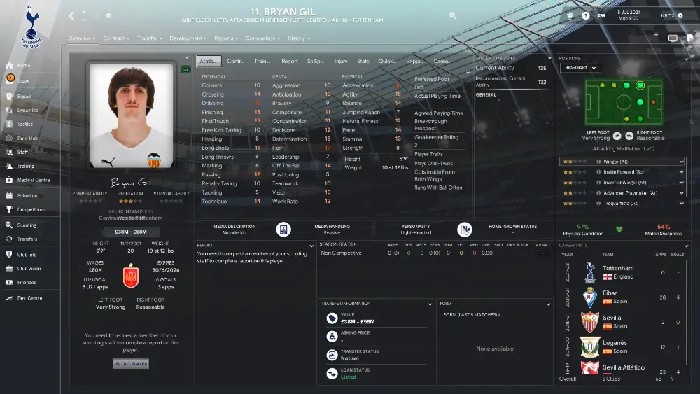 トッテナムのブライアン・ギルは、最初のシーズンの開始時にレンタル可能であり、168 PA と 135 CA という驚異的な能力を誇る才能ある攻撃的ミッドフィールダーにより、彼が素晴らしい獲得になるのにそれほど時間はかからないでしょう。
