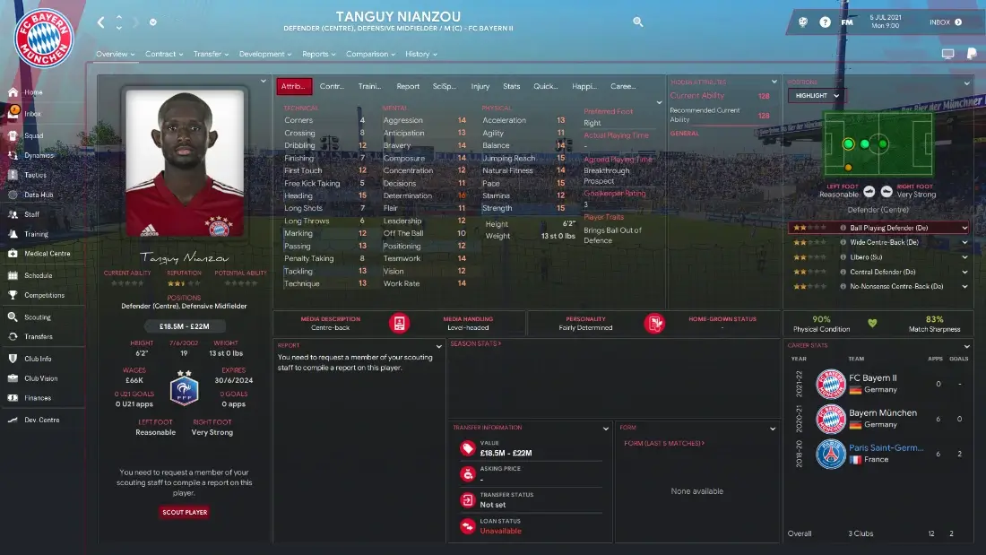 19 歳の Tanguy Nianzou は現在、ドイツでバイエルン ミュンヘンにトレードされており、161 の PA は彼を非常に魅力的な移籍ターゲットにしています。
