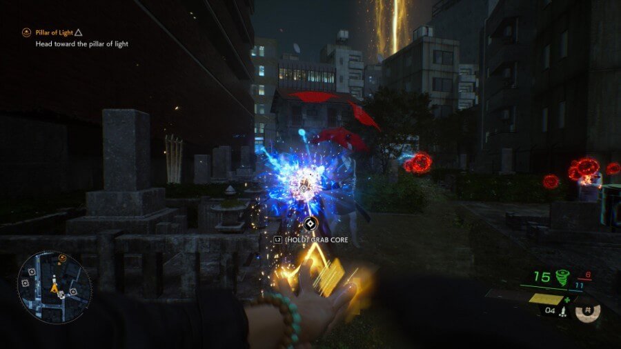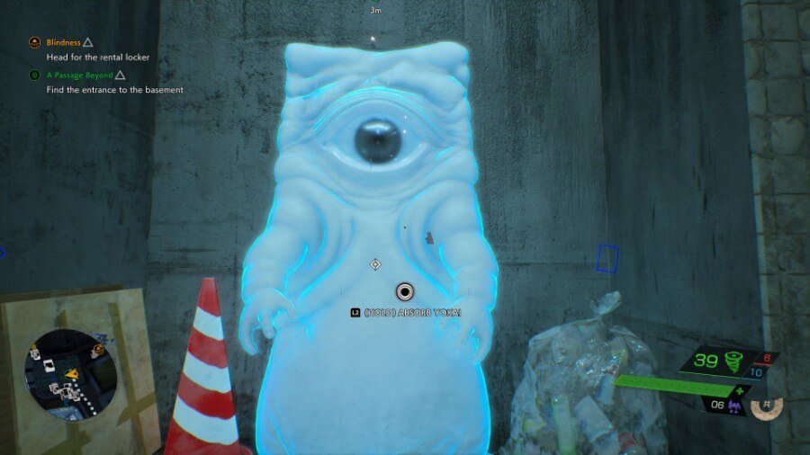 Ghostwireでは、塗壁は常に隠された、ブロックされた通路を表しています。 パスをブロックしているものには異常に汚れたマークが付いているため、通常、パスをブロックしていることは簡単にわかります。 それを明らかにするには、スペクトルビジョン(スクエア)を使用して、それを差し玉に吸収します。