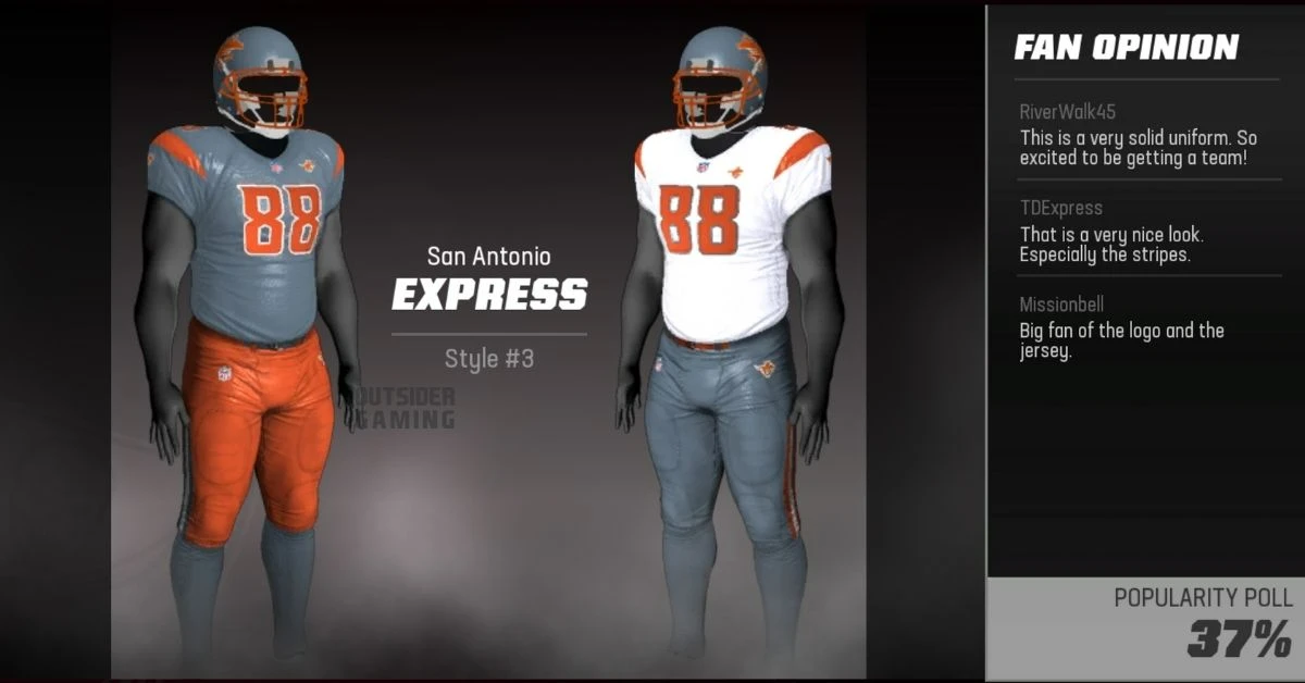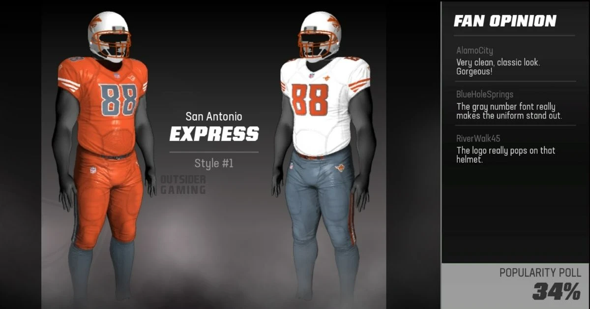 マデン23のサンアントニオドレッドノートとエクスプレスのサンアントニオ移転ユニフォーム、チーム、ロゴがすべて揃っています.