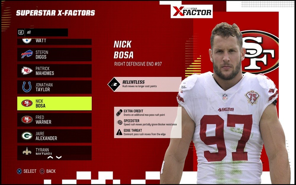 サッカーのベテラン ファンなら誰でも、「試合は塹壕で勝つ」という言葉を聞いたことがあるでしょう。 守備コーディネーターは、クォーターバックにプレッシャーをかけ、ランを止めることができなければ、長い一日を過ごすことになります。 ありがたいことに、Madden 23 はプレイヤーに Superstar X-Factor 能力を提供し、チームの防御タックルとエンドの有効性を高めます。