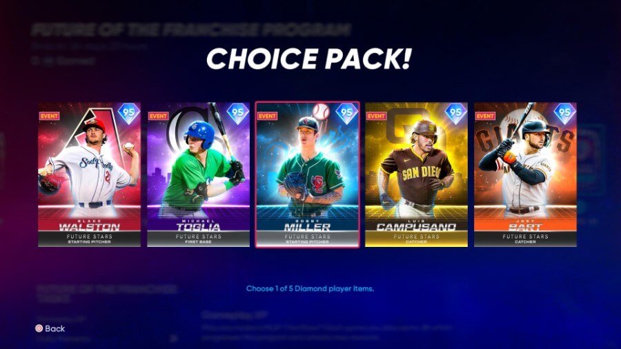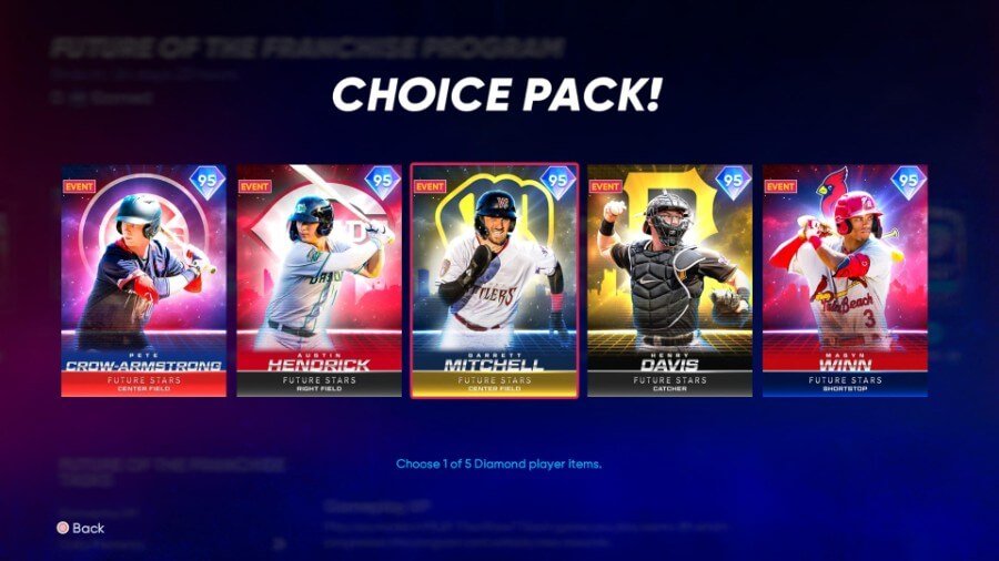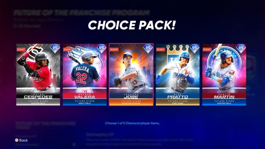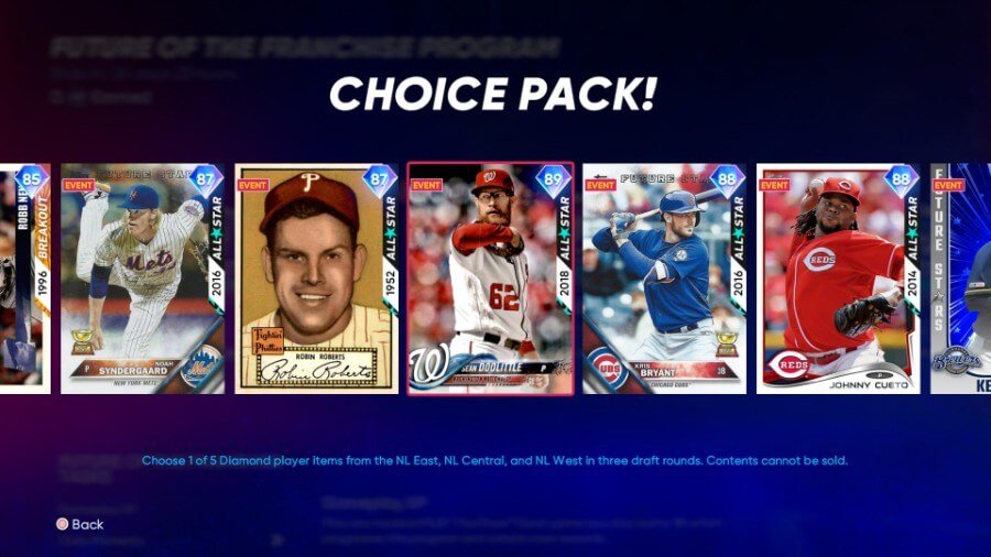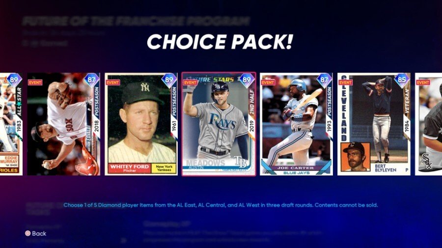 その経験はあなたがロックを解除するのに役立ちます アメリカンリーグとナショナルリーグのフラッシュバックとレジェンドのチョイスパック、すべてのダイヤモンド(85-89 OVR)。 チームごとに1枚のカードがあり、これらのカードは、Future of the Franchiseプログラムのアップデートを受け取ったばかりのFlashbacks&Legendsコレクションであなたを助けるのに大いに役立ちます。
