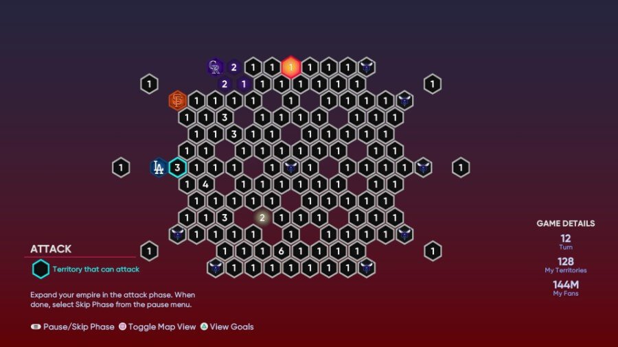 これらの体験ミッションを支援するために、ALおよびNL西地区に焦点を当てた一見3つのコンクエストマップの最初のものをプレイしてください。 マップは船の車輪のような形をしており、最も外側の隣接する場所に拠点があります。 ミッションは単純です: すべての領土とすべての拠点を獲得する。 ファンを盗んだり、「XターンでX拠点を乗っ取ったり」するミッションもありません。のんびりとプレイできます。 ただし、エクスペリエンスミッションをすばやく完了したい場合は、毎ターンファンを盗むことをお勧めします。