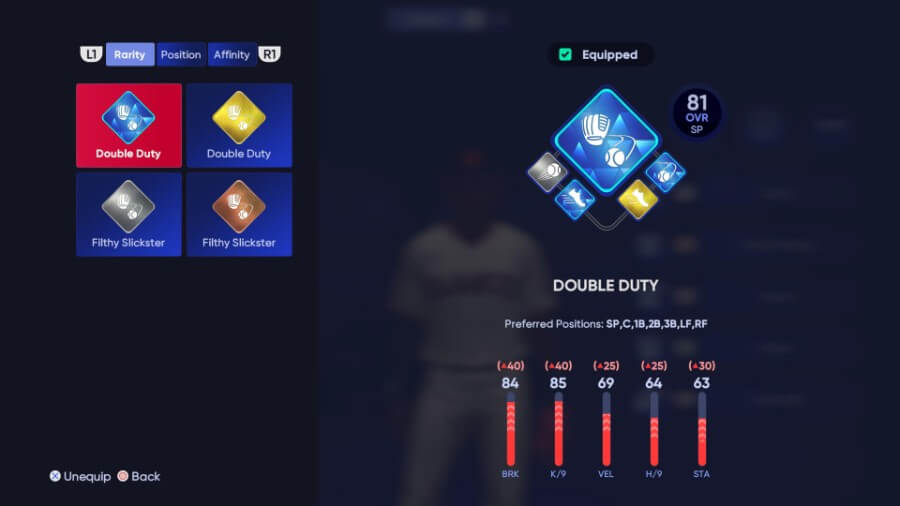 ツーウェイプレイヤーになると、選択したアーキタイプが組み合わされます。 写真のプレーヤーは 安っぽいスラッガー、つまり彼の原型はVelocityとPowerです。 ロードアウトの各アーキタイプの名前は次のとおりです。