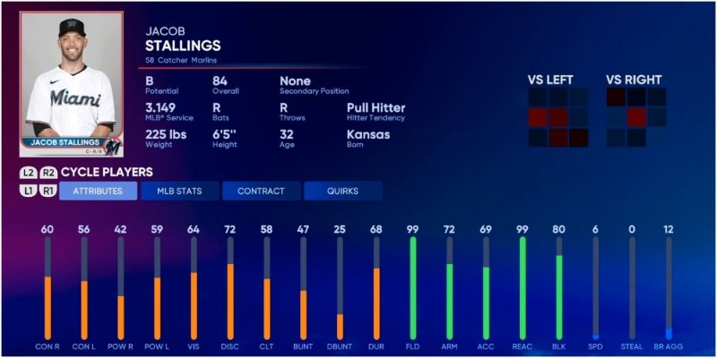 ストールは非常に平均的な打者ですが、すでにラインナップに優れたバットがいくつかある場合、彼は間違いなくチーム全体の資産になる可能性があります。 結局のところ、ディフェンシブはチャンピオンシップに勝ち、スタリングスにはキャッチャーに必要なすべての才能があります。 全体として、彼は84と評価されていることを覚えておいてください。