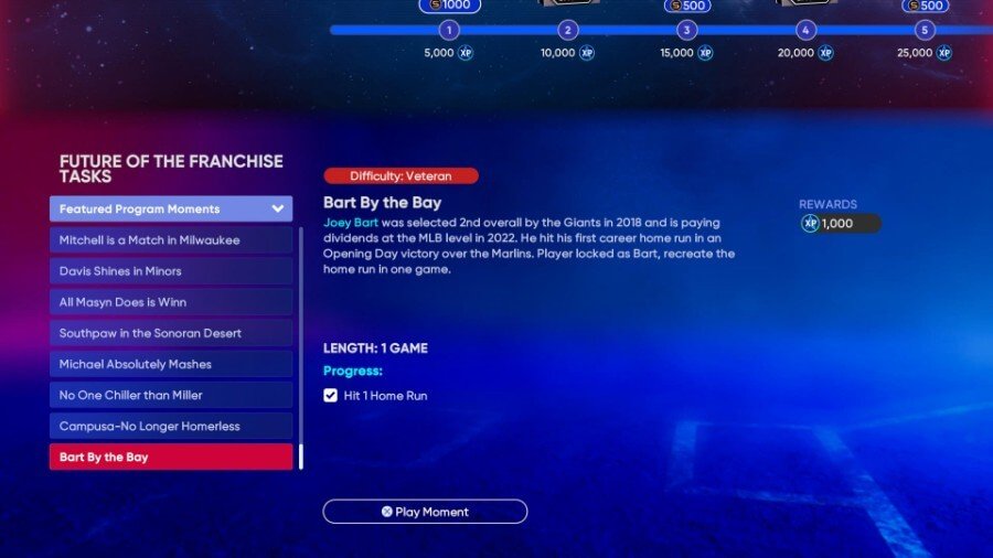 1. MLB TheShow22で簡単にXPを獲得するための毎日の瞬間を完了する