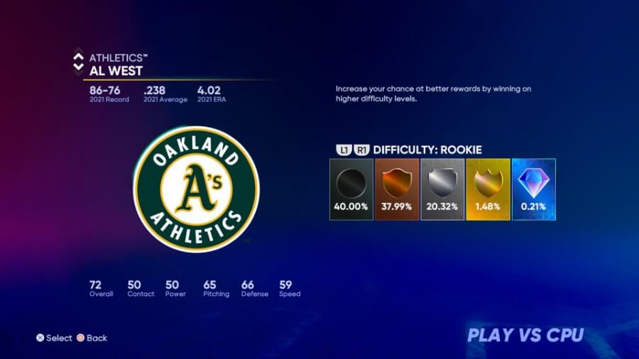 CPUと対戦したいだけなら、それで結構です。 コレクションを追加したり、タスクをプレイしたりしないとペースが大幅に遅くなりますが、プレイするゲームごとに経験値を獲得できます。 それでも、CPUと対戦するときに、ゲームを簡単にするために、 可能な場合はルーキー難易度でプレイ。 さらに良いことに、オークランド、シンシナティ、ボルチモアなどの弱いチームと対戦します。 結局のところ、上手にプレイすればするほど、より多くの経験を積むことができます。