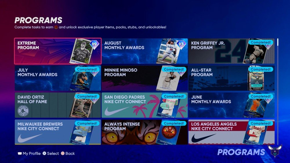 エクストリーム プログラムをまだ完了していない場合は、ショーの毎年最も難しいプログラムに挑戦する絶好の機会です。 バック トゥ オールド スクールのプログラム経験を獲得するわけではありませんが、エクストリーム ショーダウンと同様に、エクストリーム プログラムのプログラム スター (25) を獲得できるコンクエストがあります。 プログラムを完了すると、OVR 99 の最高級カード 4 枚をアンロックできます。 1998年ケリー・ウッド、2012年アロルディス・チャップマン、2010年ロビンソン・カノ、2015年ジョシュ・ドナルドソン.