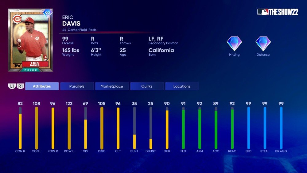 デイビスは手ごわいカードです。 今日に至るまで、彼のスピードとパワーの組み合わせに匹敵する選手はほとんどいません。 彼はキャリアで 349 盗塁し、捕まったのは 66 回だけで、これは 81% 以上の成功率です。 彼はまた、282本塁打を追加しました。