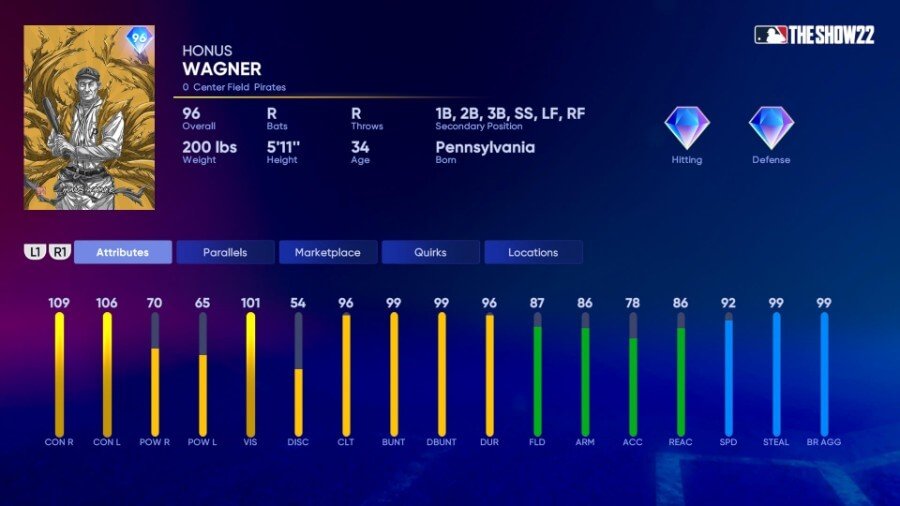 ピッツバーグパイレーツの伝説であるホーナスワグナーは、4人のボスの1人です。 ワーグナーは109コンタクトRと106コンタクトLの素晴らしいコンタクトヒッターです。彼は70パワーRと65パワーLでまともなパワーを持っていますが、ワーグナーはヒットを平手打ちし、92スピードと99スティールを使用するためにベースに乗ります。 さらに良いことに、ワーグナーはダイアモンド格付けの守備を備えた中堅手であり、投手と捕手以外のすべてのポジションでプレーすることができます。