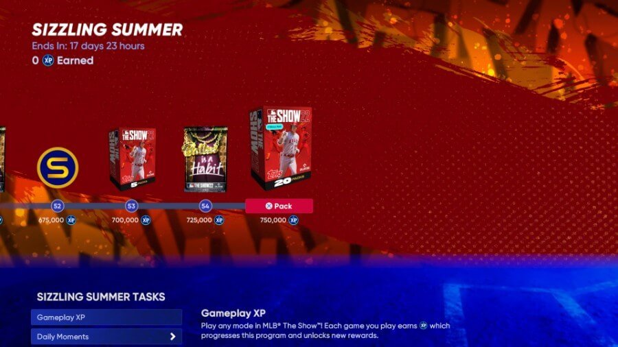 Sizzling Summerプログラムは、MLB The Show 22での経験の点で標準的なプログラム基準となったものに戻ります。FutureoftheFranchiseの100万の経験とレベル78の上限とは異なり、SizzlingSummerには 750,000の経験とレベル55の上限。 レベルの決定方法はプログラムによって異なりますが、750,000の経験がより一般的な経験の上限となっています。 プログラムは約17日で終了します。
