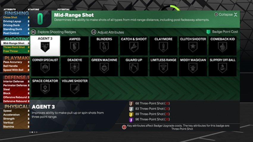 エージェント 3 バッジ 弧を越えてプルアップまたはスピンショットを行うチャンスを増やします. また、ダウンヒルやハイパードライブを短くしたいときや、トレイ ヤングやジャマール マレーのように引き上げたいときにも便利です。 あなたのプレイスタイルがシュートとプルアップスリーを打つことに基づいている場合、このバッジはあなたの能力を最大化するために必要です.