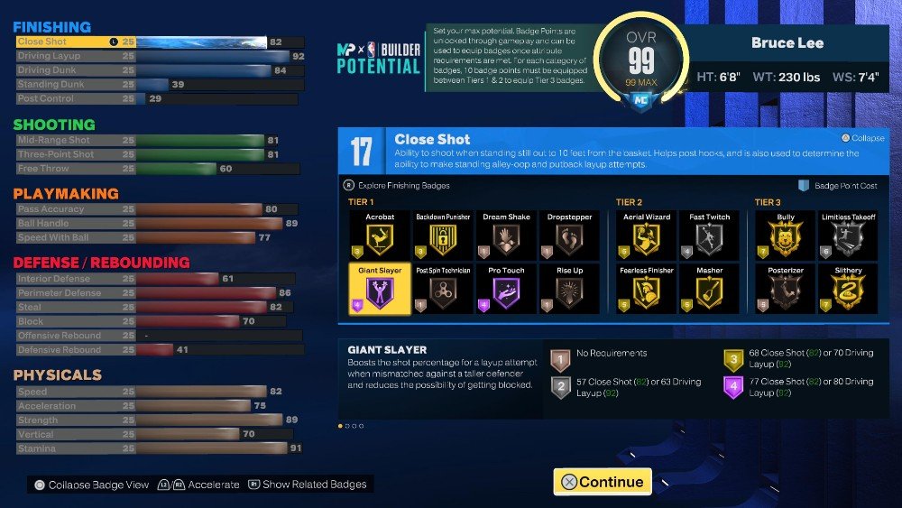 最後に、89 ストレングスといじめっ子バッジを組み合わせることで、プレイヤーは他のプレイヤーよりもはるかに優れたグラスでフィニッシュできるようになります。 これらの違いにより、プレイヤーはエリート フィニッシャーに昇格します。 82 スピードと 91 スタミナはポイント フォワードの必須属性です。