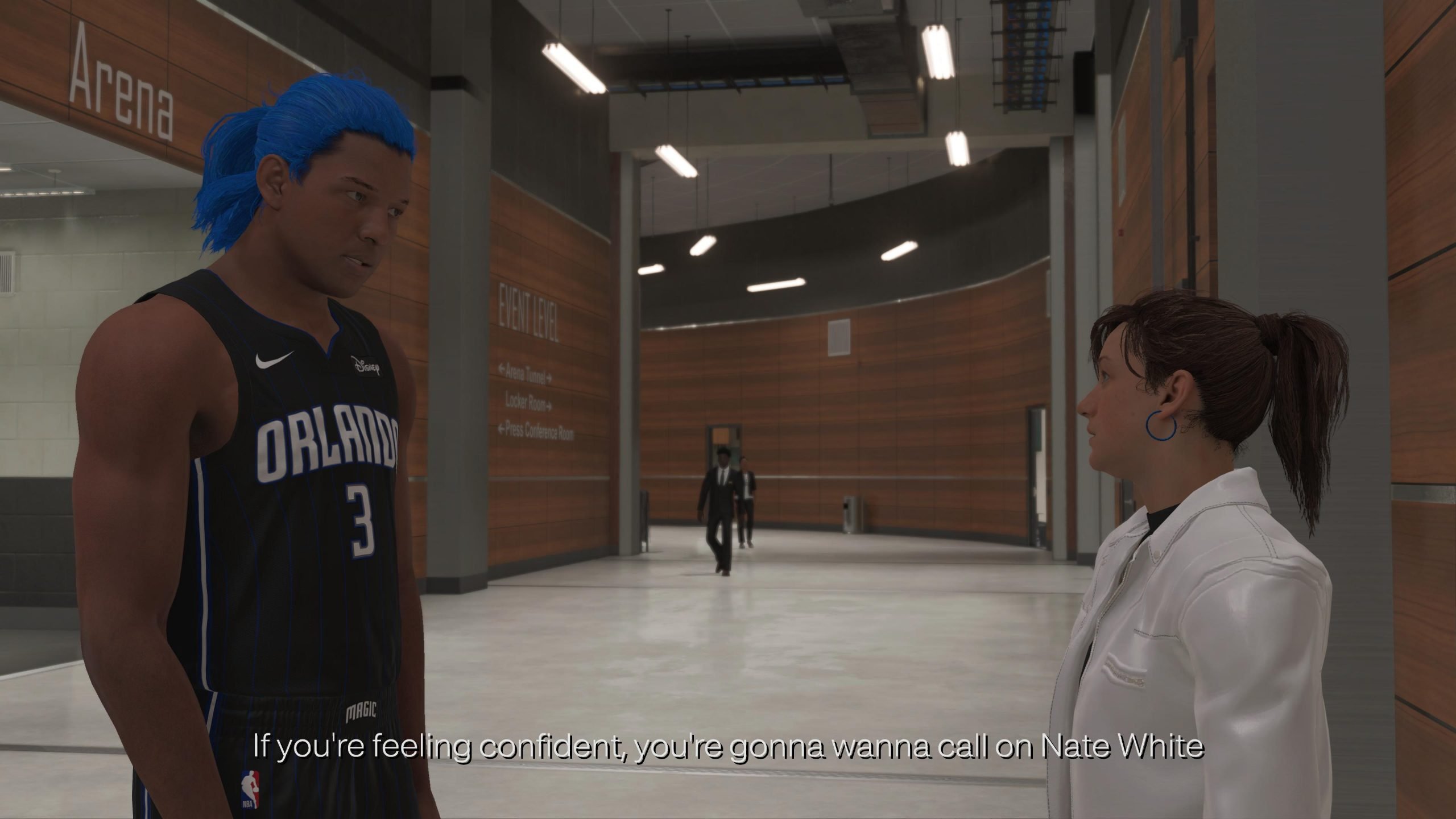 ネイト・ホワイトは、より適切な用語がないため、お針子です。 彼は 3 つの質問のうち、より難しい質問をあなたに尋ねます。 ライバルのシェップ・オーエンズ。 彼は、1 回のターンオーバーで 14-5-14-1-1 のラインを張った後、ゲームのネガを見つけるレポーターです。 ただし、彼の質問は悪意のあるものではなく、特に難易度が高い場合は、MyCareer の課題に備える良い方法になる可能性があります.