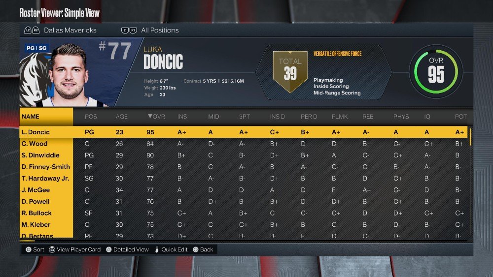 ルカ・ドンチッチは事実上のスターティング ポイント ガードのままですが、2K レーティングが積み重なると、得点ポイント ガードはシューティング ガードにスライドアップし、彼も同様に座った時点で星を綴ります。