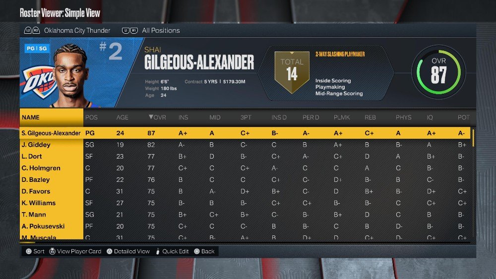 チェット・ホルムグレンがシーズンを欠場しても、楽しい若いチームになるでしょう (ただし、2K でそれを変更できます)。 ヒント: ポイント ガードをアスレチックで速くし、各プレーで全員がトランジションで走るようにします。
