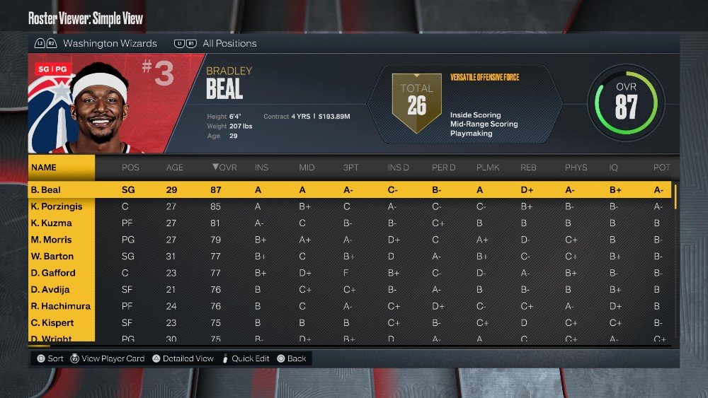 ブラッドリー・ビールだけがワシントンで効果的な隔離バスケットボールをプレーでき、それがあなたのチャンスを開きます。 スクリーンを呼び出してビールの負荷を軽減し、八村塁やカイル・クーズマなど、チームのフォワードのいずれかを 3 でポップさせることができます。 それでも、ポイントガードにはオンザボールとオフザボールで得点する十分な機会があるはずです. Kristaps Porziņģis とのピック アンド ポップを開発することもできます。