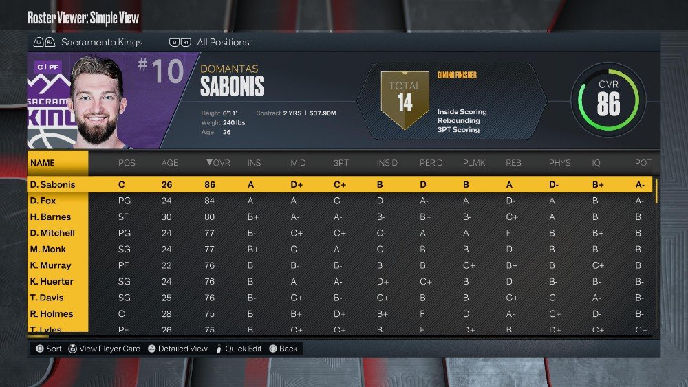 ピック アンド ロール プレーヤーとストレッチ フォワードで満たされたチームには、プレイメイキングの機会がたくさんあります。 名簿には、フォワード スポットにザック コリンズ、ケルドン ジョンソン、ダグ マクダーモット、アイザイア ロビーなどの選手が含まれ、ガード ポジションにはジョシュ リチャードソン、デビン ヴァッセル、ロメオ ラングフォードが含まれます。