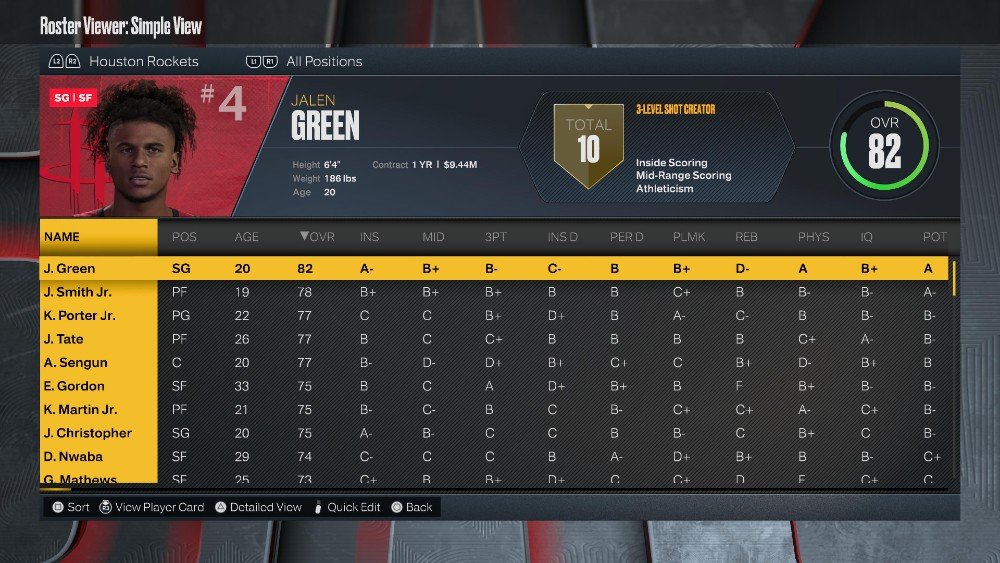 Jalen Green がほとんどのタッチを獲得します。そのため、プレーヤーは 2 番目のスターになるのではなく、彼のスキルセットを補完する必要があります。 ロケッツは、スターではなくポイント ガードに応じて明るい未来を迎えます。そのため、KPJ やゴードンのようなプレーヤーは、ボックス スコアのポイント列を簡単に埋めることができるため、スコアラーではなく、ディストリビューターおよびプレイメーカーになることに集中してください。